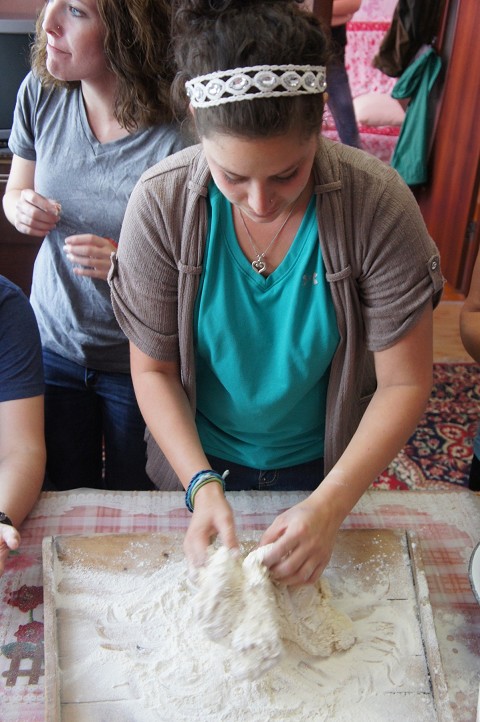 Me helping with the dough on the night we made Varenyki with a bunch of people from the church.