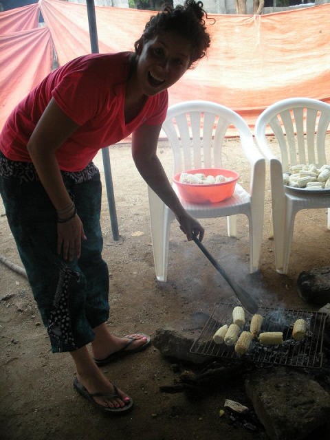 We ended up making garlic potatoes, regular potatoes, french beans, bread, tons of fruit, roasted corn, and chicken (which I cut all seven up with a little help of mama!)