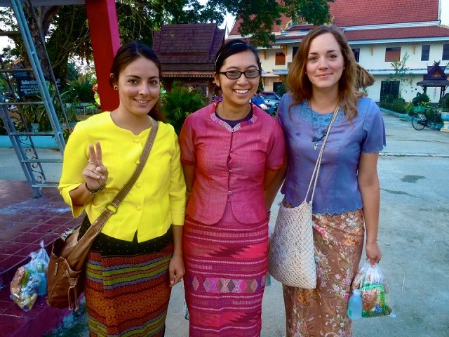 It was a Sunday morning, April 15th to be exact. We’ve been living in the village for about 5 days now, living with our families, experiencing Songkran, the water festival and new year. Paige, Ada, and I [my teammates whom I’m living with] woke up bright and early. 5:30am. Got dressed but our host mom did not approve with our attire. She went into her cabinet in the little hallway and pulls out some traditional Thai clothes for the three of us. We cannot be wearing our “American clothes.” Today we’re going to the temple. And on top of the table were clear plastic bags filled with bags. Offerings to Buddha.