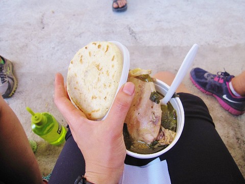 Then, the other night for dinner, I get handed a tamale. I had kind of started eating it and all of a sudden, Jenny, our host/translator comes running towards me. She says, “Don’t eat it Peggy!!” And shows me the chicken in my tamale. Anjali then comes next to me and tells me her tamale had a really small piece of chicken in it.