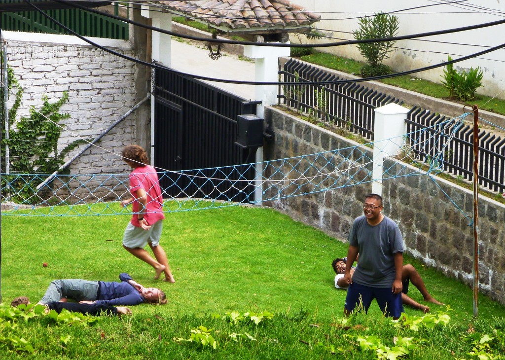 volleyball with a hacky sack and a dart game all rolled in one. Further away