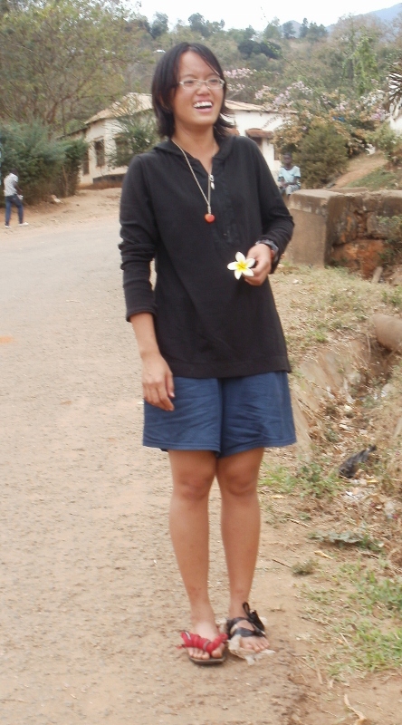 She never once got angry at the person who stole her bag. She did not mourn the loss of her things, asserting that they were just material anyway. When we got to the paved road, her and Christi-An found 2 separate flip-flops which had been discarded on the side of the road and fashioned them into shoes for Pei Yee to wear back into town.