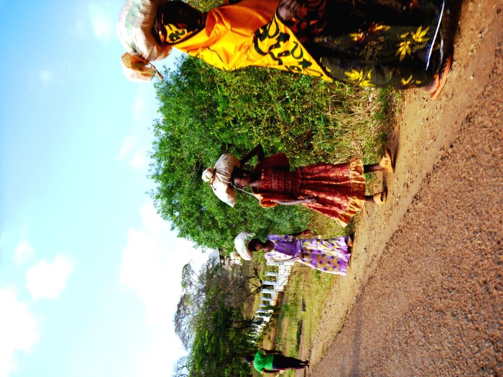 Shoe #2: We reached paved tar roads and it was hot and very rocky (more so then on the mountain). So we fashioned another shoe for me: Bubble wrap under my foot, plastic bottle as shoe sole, all tied together with plastic bag. I was cracking up the whole time cause I thought it was too funny and bizarre. Something I would never EVER do in my life back home. While doing all this, 2 African young men walked by and they probably thought we were crazy. HAHAHA