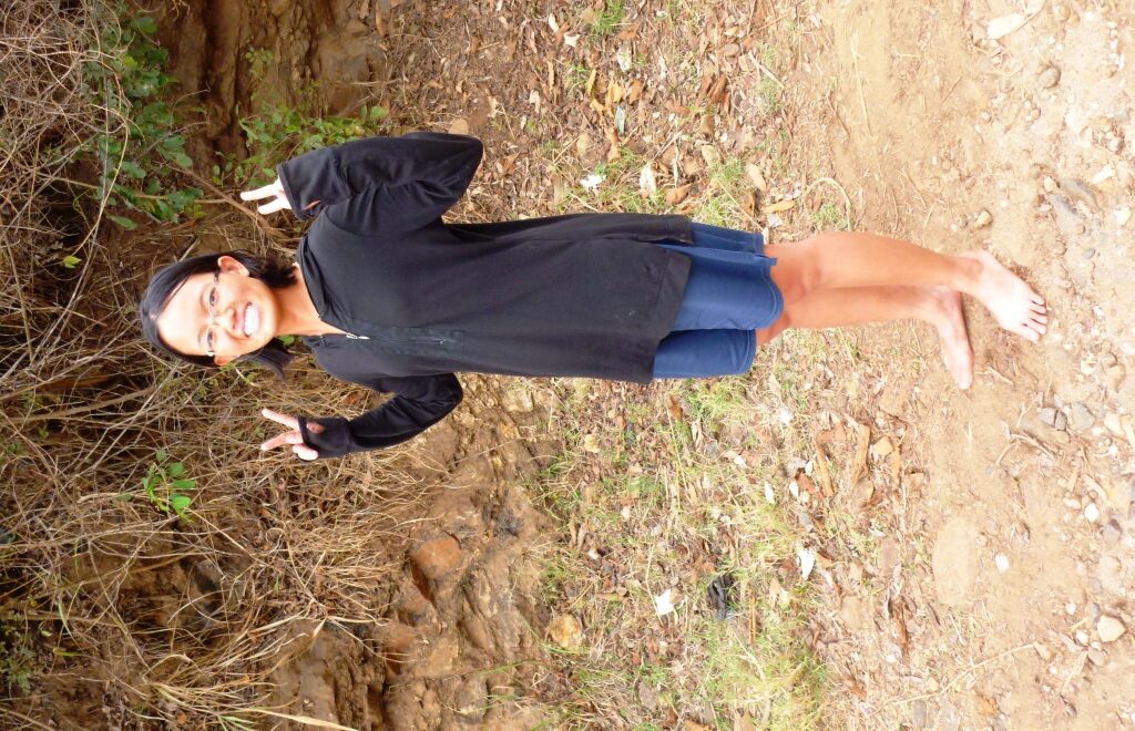 When my backpack got stolen, everything I had brought was stolen too, including my shoes, clothes, towel, rainjacket, hat, journal, etc. Thank God though that I had my waterproof camera with me in my pocket, but my camera case and other SD cards were gone. Here I am wearing Christi-An’s clothes and walking down the hill barefoot.