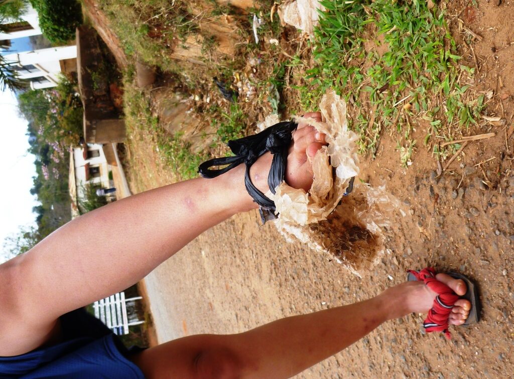 She never once got angry at the person who stole her bag. She did not mourn the loss of her things, asserting that they were just material anyway. When we got to the paved road, her and Christi-An found 2 separate flip-flops which had been discarded on the side of the road and fashioned them into shoes for Pei Yee to wear back into town.