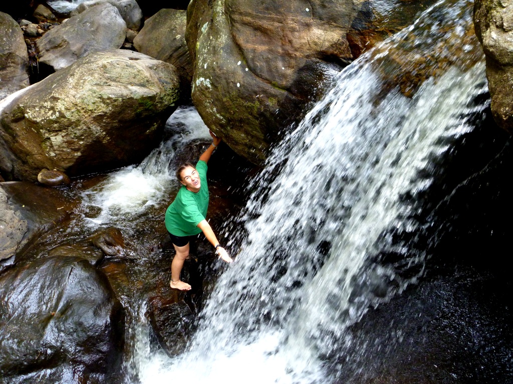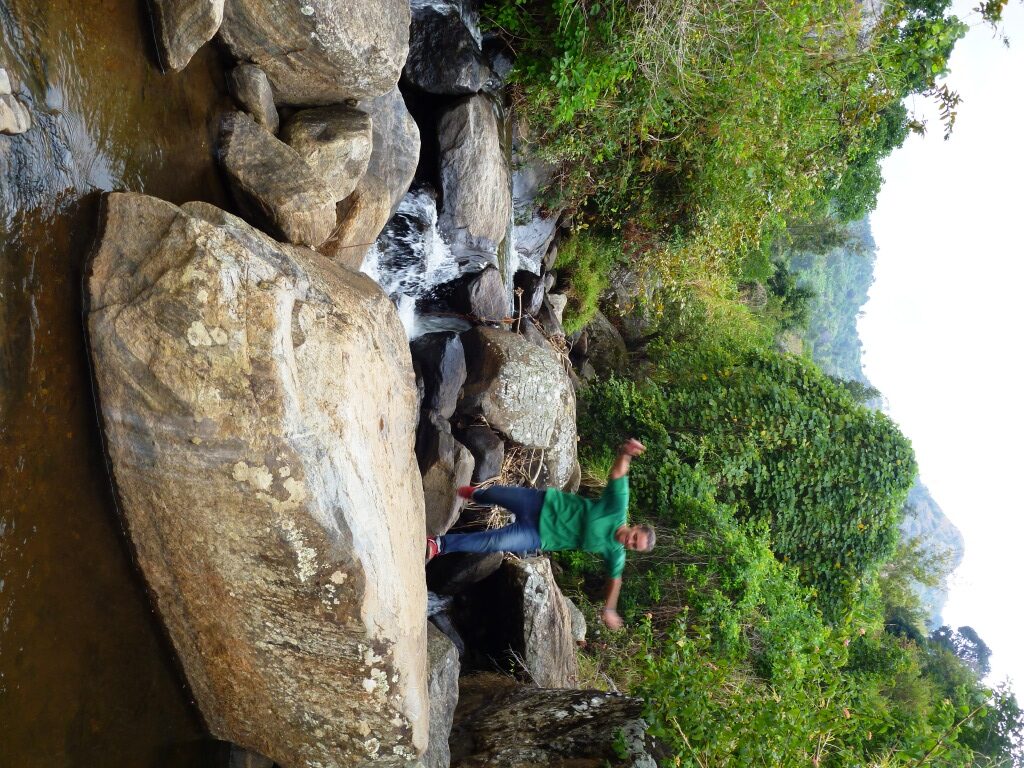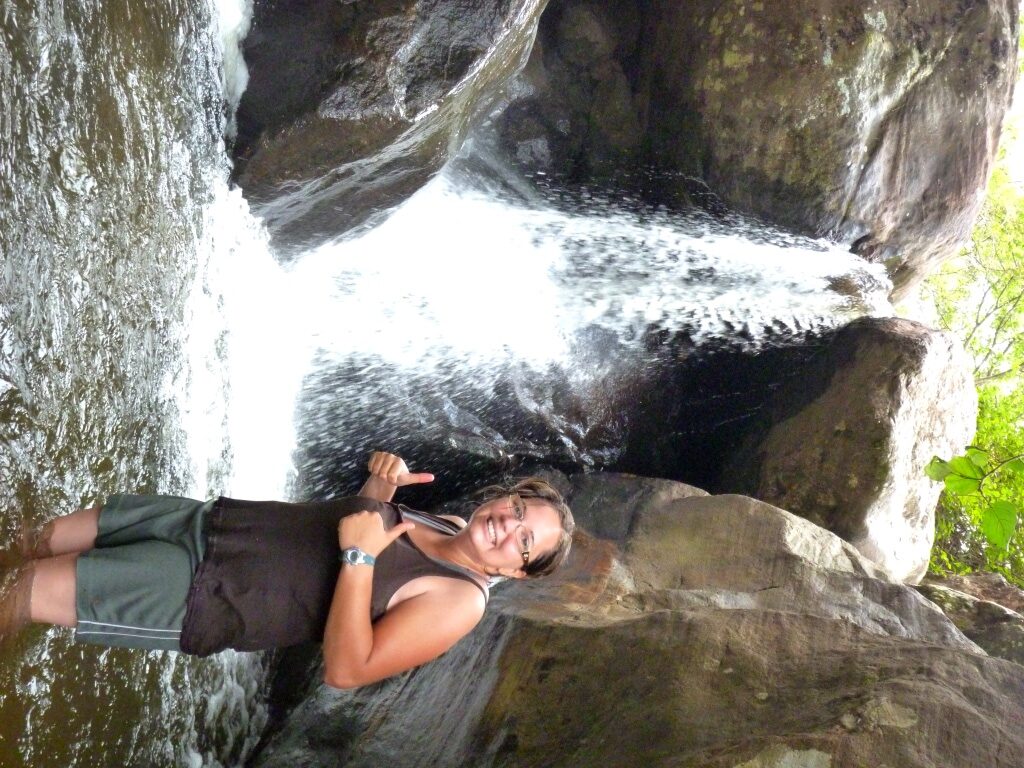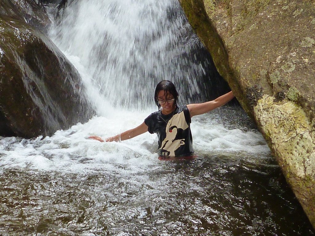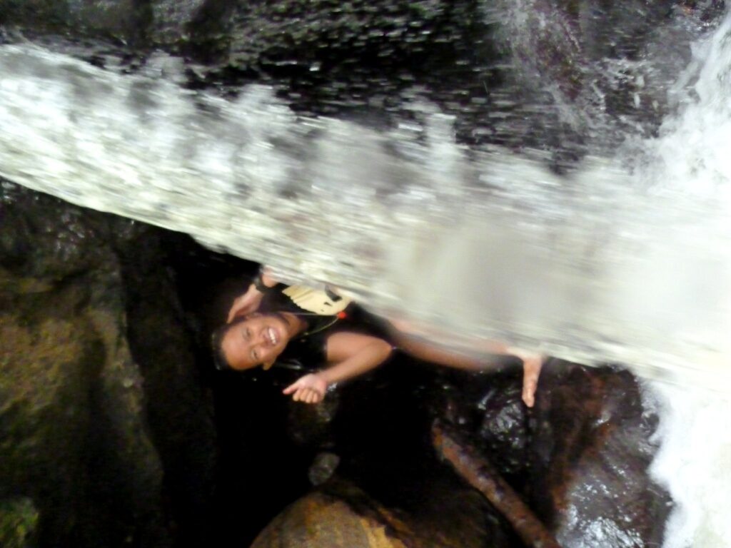 Me hurrying to come out from the freezing water after standing under the waterfall.