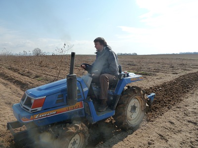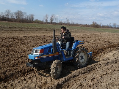 After a week of gloomy ominous clouds and freezing temperatures, today was the first sunny day for us in Bulgaria. Perfect timing too, because after driving through mud, creeks, and ponds, me and David arrived at a field to do some farm work. When we were Mozambique, we plowed the dirt with hoes under the hot African sun. Here, under the warm sun and cold winds, we had access to this baby.