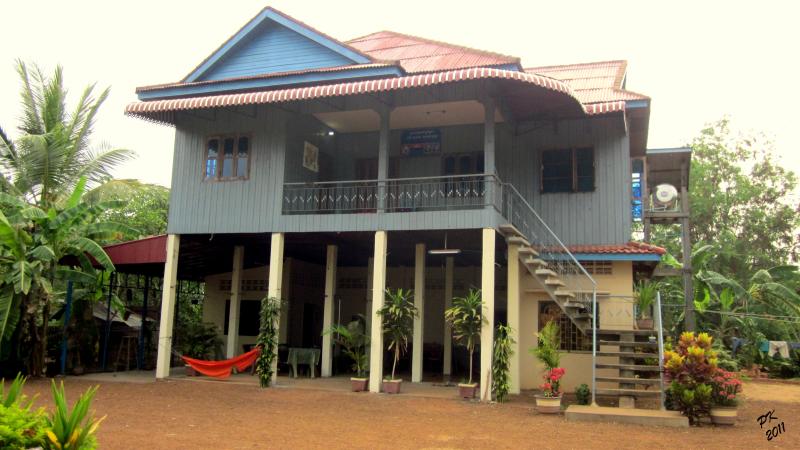 he past three months (Philippines, Thailand, Malaysia) has been spent mainly in cities with lots of westerners and modern facilities, but this month, we straight up in the country. There are no Starbucks around the corners, no tall skyscrapers, no 711 stores, and best of all no other Westerners besides our contacts. Instead of all those things we have: red dirt roads, people wearing pajama sets at all hours of the day, a market that is SUPER sketch where we get our food from, riding our bikes EVERYWHERE, bucket showers, living in a house on stilts, and best of all scorpions and tarantulas as snacks! Cambodia really is the poor man’s Thailand. J