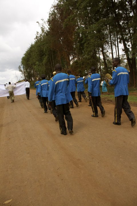 The day came for the church launch and it was an EXTRAVAGENZA! Pastor Omega hired a marching band to hold a procession leading up to the church which we also took part in. There were guest Pastors from Nairobi and surrounding areas and Bishop Jonah was also in attendance. It was quite the event! Normally our services last 3 ½ hours, but that day since it was a special celebration service it ran about 5 hours long. Yes, 5 hours long. It wasn’t boring at all by any means, but my mind (yours would too!) wandered off a few times during the service. A question that popped in my head was,
