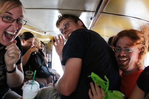 Here we are packed into a Jeepney on our way into town. This will happen alot here.
