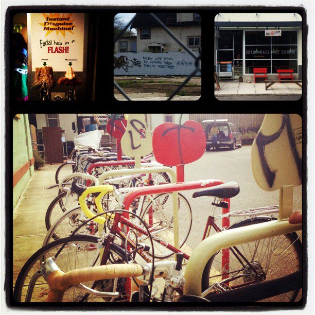 NE Portland I’m thankful for your originality- for your mustache machines in book stores, your funny graffiti, your amazing ice cream shops, and rows and rows of bicycles.