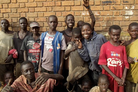 After handing out all of the bread, we called the boys together to introduce ourselves to the entire group and tell them why we were there. I gave the introductions, and told them how the Lord had called us on this mission, and we just wanted to come and spread that Love to them. “You are so worthy and so loved by the Father.” I told them. Then one of the girls on my team gave them the word the Lord had given her when she was left by her Father: ” I am your father the Lord said. You can depend on my for anything. That same father to me is your father as well” she told them. Liliana began speaking to them next, about believing that the Spirit could really come in and change their situation. “Do you really believe that? like really in your heart, believe and trust him for that?” Finally Sarah, our contact started speaking to them. She was speaking in lugandan, so I’m not sure exactly what she said, but afterwards a large group of them raised their hands and said they wanted to accept Jesus. Rajab and Jusef were in the very front of all these boys with their hands raised up high waving. Before lil prayed to them I explained to them a little.