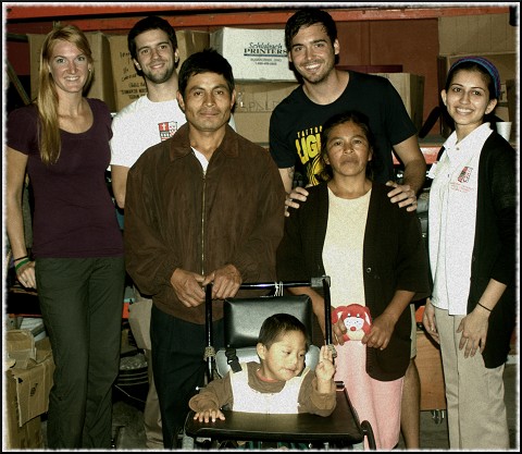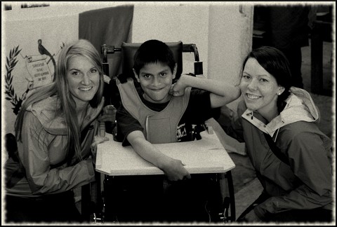 Meet Pablo and his parents, Mercedes and Maria. . Pablo is three years old and has Down syndrome. He will one day walk, but it will take time and patience. He is one of the most joyful children I have ever met, so eager to move and dance! (The man in the black shirt is Thomas, my team leader. The two in white shirts are PT students who were volunteers)