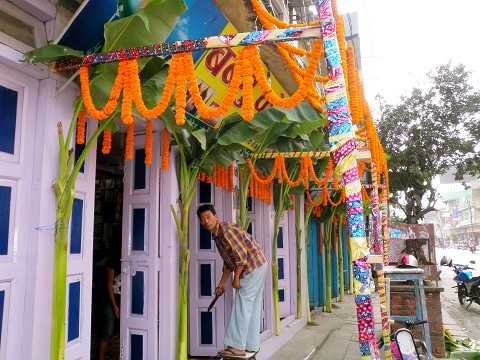 In trying to understand more about this, I’ve been able to read some information in the local newspapers. The Tihar festival is one that “celebrates the victory of good over evil, light over darkness, and knowledge over ignorance.” One day is focused on worshipping dogs and crows. The crow is considered to be a symbol of sadness and grief so people offer food to them to prevent this in their homes. Dogs are also celebrated because of the cherished relationship between them and humans.