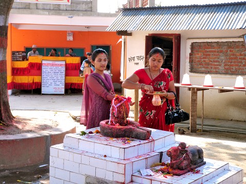 On the 26th, the goddess of wealth is celebrated. We were at one home where a man was explaining (or best as we could understand) that they worship and offer food to this god so they will be blessed financially. They believe that they are poor because they don’t do enough to please this god. We tried explaining him about the Jesus’ love that is free for all but I’m not sure how well he understood, even with our translator.