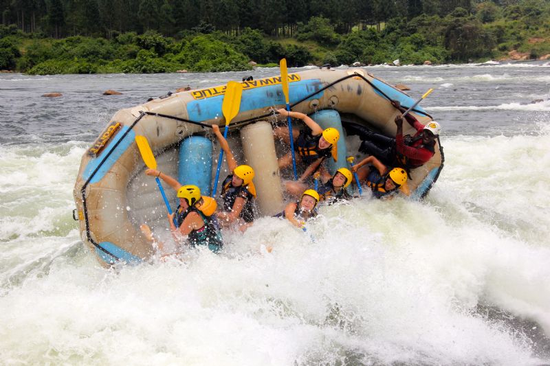 Rafting the Nile River in Uganda with my team. An unforgettable adventure.