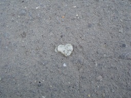 pavement so it was one I couldn’t pick up. I went to it, and looked at it and said to God, “Thank YOU.” As I continued walking, Cameron Caviness saw me and yelled…”what was that?” I said to him, “God gives me hearts.” He said, “oh, Yeh… where do you get them?” I responded… I don’t know… everywhere. In rocks, leaves, clouds, in the fire, in my hair… lots of places.” He said, “that’s awesome… God gives you hearts…” I said, “yeh.”