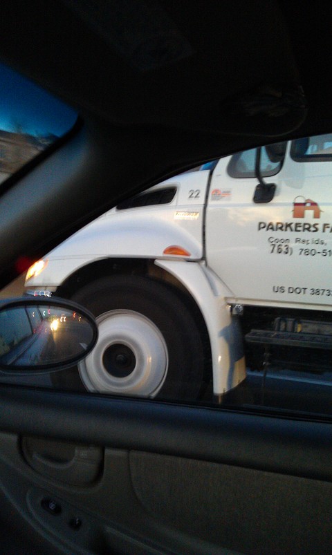 As it pulls ahead of me I see what the truck is A SAUSAGE