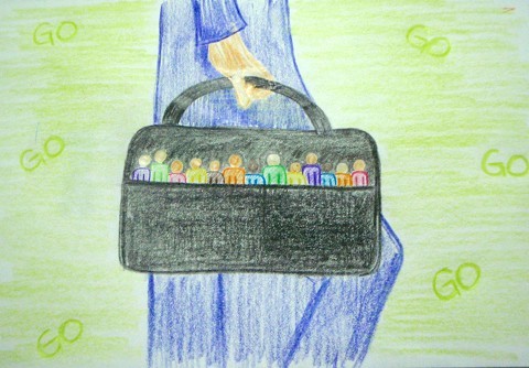 pocket in the front and back. There are markers tucked in the pockets for