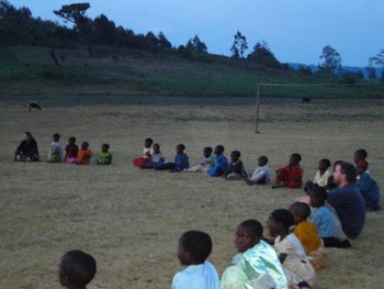 During our time in Tanzania, our pastor took us and a one of his 20 person choirs to a village in the middle of nowhere. We took a flatbed into the depths of the mountains. As far out into the midddle of nowhere as I think I may ever get. The truck got stuck several times, of which we had to tug-of-war out of the mud. Deeper and deeper we went. Mud huts got fewer and far between. The pastor looked at me and smiled his gap toothed grin: “Vill-age…hehehehhe.” Uhhh…