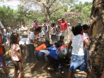 We did two pinatas for the village we worked with a lot. This is what happens when it breaks.