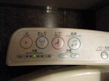 (Side note: this is the contraption on the side of toilets in the Tokyo airport. You can play a recorded flushing sound just in case you are being too loud).
