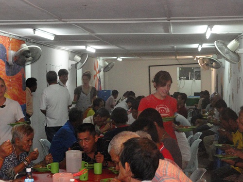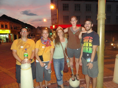 Malaysia! It’s so naturally beautiful here-very green and lush, however on the flip side we are being exposed to the very dark and unlovely parts-which is why we’re here. Our ministry here is multi-faceted this month-on Mondays, Wednesday, and Fridays we work from 9-3 at a “drop-in” center for the homeless (called Kawan http://www.ywampenang.org/jw/index.php?option=com_content&view=article&id=85&Itemid=99 – )preparing and serving them breakfast and lunch and also cleaning up and talking with them. We have also been peeling paint in the upstairs of this building and let me tell you-that is a tedious job! I will post pics later of this :o). We also attend several prayer meetings randomly through out the week for many different aspects of Malaysia,and  we do a night ministry where we walk the streets and visit with prostitutes-some of which are forced and also the homeless or whoever God leads us to.