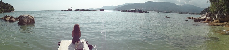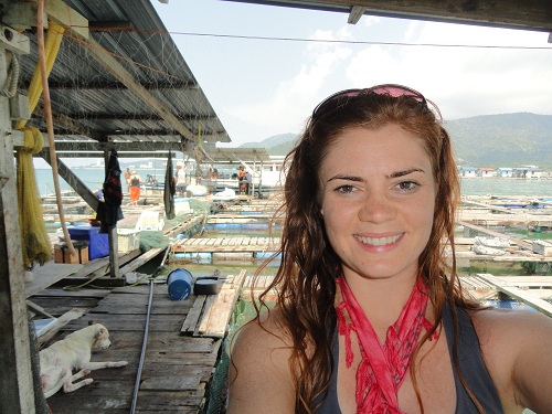 The fish farm is behind me and below is a view of the marina right before our boat docked-beautiful!