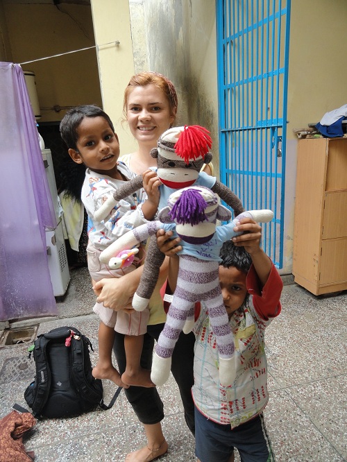 Raiki and Abigail do India! (although later the Pastor I am staying with said monkey’s are a Hindu god and was putting a cross on Raiki’s forehead and shaking his head…..Raiki will now remain packed for the month :o))