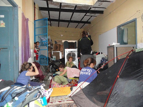 The girls room, during the evening we walked in and they were all huddled around a girl laying their hands on her and praying for her about something, but their hands were raised and they were crying out to God, we were speechless!