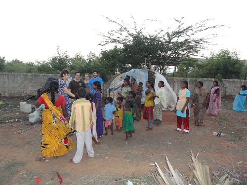 India! We’ve been here almost 2 weeks now, and it has pretty much been non-stop with all that we’ve done. Our ministry here happens during the evening hours (because of the 100 degree weather during the day). We do something called “open-air” preaching in the streets of this village as well as surrounding villages with a microphone strapped to a bike. We also sing songs and pray with people who come up during this (for healing or prayer for family members) and many times we are invited into homes to pray on the way. Yesterday as we were walking to church a Hindu family saw Pastor (who wears all white-this is a sign of purity here, most cars are also white…which I found interesting), and asked us to come and pray for his 20 day old baby who has been crying all night for the past several nights. This was a neat experience, the baby had the typical white chalk markings all over his head and black dots, I held onto one of his little hands and prayed! After open-air preaching we do something called “cottage prayer” where we go to a home (usually a church member) and PRAY PRAY PRAY and also do an encouraging sermon and sing. We lead Sunday service as well and preach and sing for 2 hours straight with no AC and no fan (the village turns the power off from 9-12pm) and I think we almost all passed out and probably all sweated at least 2 gallons yesterday-I know at one point we were praying and I looked next to me and Charles was kneeling with his head in his hands (and not just from praying!), Ailson was sitting in a chair with a face as red as a tomato, and I was leaning over the podium-we love You Jesus! We will all be preachers and fairly decent singers by the end of this month! Our ministry is usually from 4-9 or 10pm, and I have found that cottage prayer is my favorite as we get to spend time with the families in the church and have a meal with them. As a team we have all been struggling with how late they eat at night here, it’s usually around 9pm and a lot of what we get served is onion based and so our stomachs have been a bit “off” lately :o). One thing that really saddens me is the amount of trash that is strewn everywhere, I don’t understand it, for as beautiful as the women here dress and the amount of respect the men have for each other, it really confuses me. It’s pretty dirty here, sanitation doesn’t seem to be a high priority…so please pray for our health! 4 (myself now included) out of our 6 member team have come down with a sickness that I won’t go into detail on, but it involves the squatty potty! During the day when we want to brave the heat, we walk 30 minutes to a place that has internet once a week, we have also gone to the seashore-2 of us almost had heatstroke (we are not used to this heat!) and we went to the market once to buy Sari’s, the Sari’s here are so pretty and cost a total of about $10 USD (one of mine is pure silk)-which is pretty cheap!. Jesus is allowing us to be stretched beyond our comfort levels, but this is always a good thing as God continually molds us into looking, thinking, and acting more like His Son, bring it on God! Lately I have been waking up in the morning and thinking to myself…this is my life, I have not been in America in almost 5 months…the longest I have been away before that is 2 weeks (in Trinidad-shout out to Roger and Kumarie-miss you and everyone else!). It’s just really strange to think that I still have 6 more countries and 6 more months to go before returning, it’s not that I’m sad about it, it’s just strange. I do miss my family and I miss the things they are doing and I am sad that I missed my brother’s wedding and will miss the birth of my first nephew…it’s just the way it is and I know that this is where I’m supposed to be at this time and in this season of my life, and above all of this I am grateful to God for allowing me to be a part of such an incredible mission. My fellow squad mates feel more like 41 family members than anything else and truly that’s what they are. Anyway, I regress…India is HOT, dirty, and covered in trash, but I have fallen in love with the people here and am so excited to continue serving in this country for the next couple weeks! Love you all! MISS you Mom, Pa, Zach, Amanda, Sheela, Jeremiah, Olivia, baby Roman, Cija, Ryan, Logan, and Ava, Jenni, Laura, Twin Lakes peeps, Spa peeps, Chapel Hill peeps,…just to name a few!!!