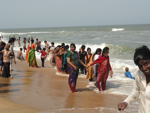 India at the beach! (Much more covered than we are in America!) We should take lessons!