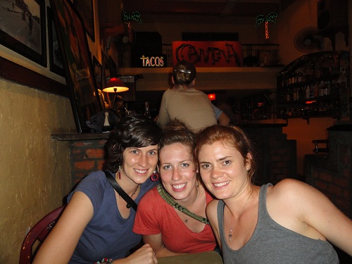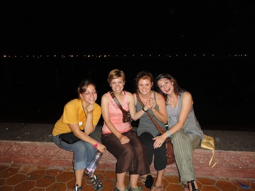 After dinner at a river-Kim, Katy, me, and new friend (also on human trafficking route) Katie :o)