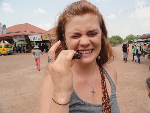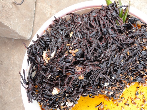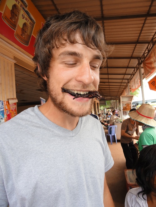 Ben at the tarantula village in Skuon…he ate the entire spider…