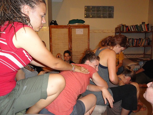 Massage train! :o) Jessie, Alison, me, and Chelsea…we were all together learning the history of Cambodia before leaving for our ministry sites :o)