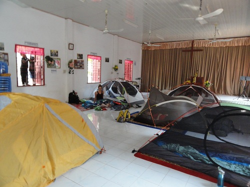 Our new home for the month (church), we set up our tents for privacy/mosquito prevention :o)