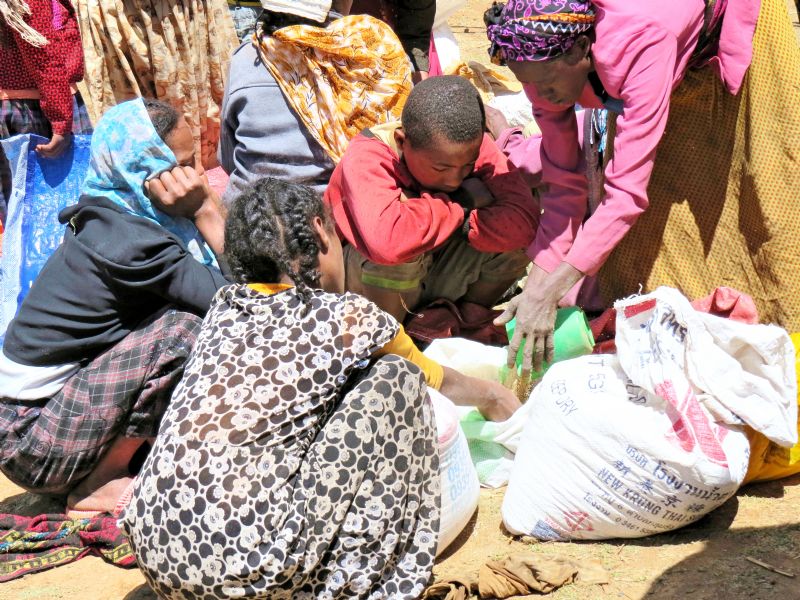 Once every month Distribution Day happens. This is the day where the families that Ordinary Hero sponsors gather to get their limited supplies for the month. Each child supported receives a bar of body soap, cooking oil, and teft – the grain used to make injera, the staple food in Ethiopia.