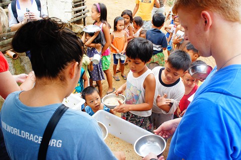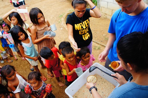 My team is in the Philippines right now. The organization that we are working with has many different ministries that we can get involved in. One of the ministries that I participated in was the “feedings”. Everyday and twice a day (except the weekends) , the volunteers go out to extremely poor areas and feed the children and families. The day I went, we drove 45 minutes until we got to “Tent City”. They visit “Tent City” every Monday and Thursday morning.. These families are really living in the middle of no where. Hundreds upon hundreds of families dumped here. Rows upon rows of small cement huts.