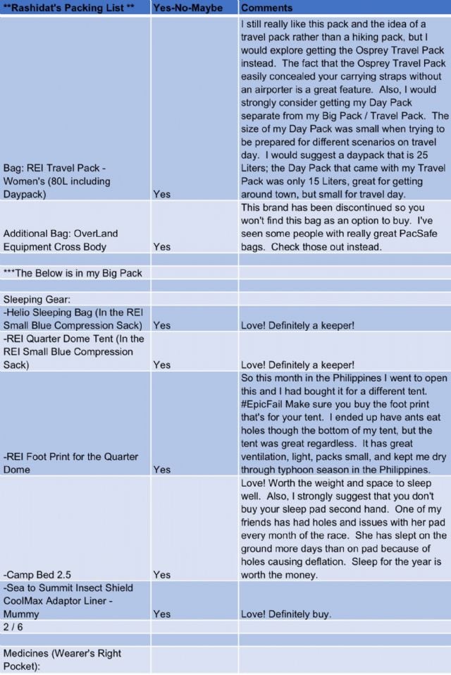 As I packed for the Race I was very intentional about everything I chose to bring and how I chose to pack it and still I have learned a few things while being on the Race. Below is my original list with notes about whether or not I would still suggest to bring it with you. In addition, I have a list of the things I’ve learned while doing this journey for the last couple months. And don’t forget, in my first post I talked about how to make the most out of the space you have in your pack. If you are interested in any of that information check out that post here.