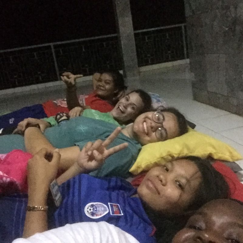 As we finished up, Kumpeah asked if we could all sleep together. It was a heart warming invitation! So in sleepover fashion, Kat, Kayla, and I positioned ourselves on the balcony floor with the 3 young ladies who wanted to keep our company for a little bit longer.
