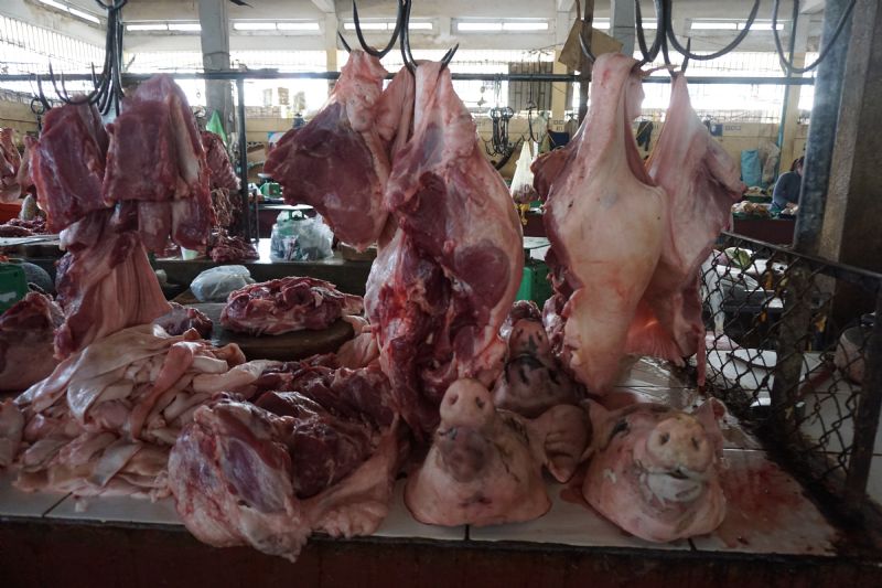 (At the local markets; I do not eat meat from the market but the meat and the produce are super cheap. 50 cents/watermelon and Bags of produce for only $2. Can’t beat it!)