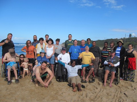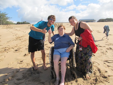 Going to beach and pushing the wheelchairs through the sand.