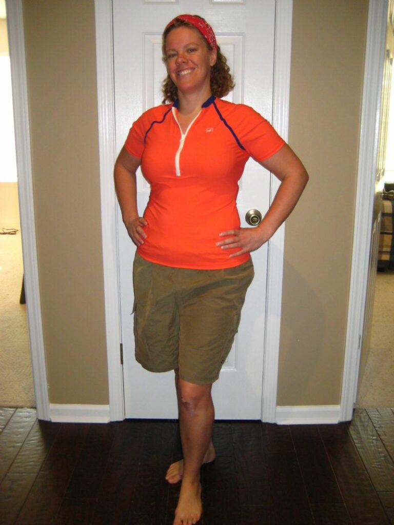 I found a cute rash guard on Amazon and will be pairing it with a pair of Dad’s swim trunks. They are huge but they have a draw tie and come to my knees. I think I look good. 🙂
