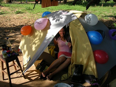 My team made it a very special day for me, it was great! They woke me up with our traditional birthday morning jump through a sorong and presented me with some delicious, hot, french press coffee…mmm! They also beautifully decorated my tent! 🙂