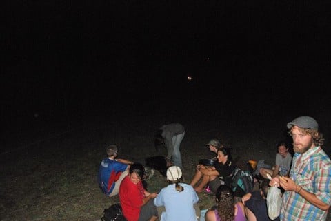 highway, instead of the surrounding grass. We all turn off our head lamps and