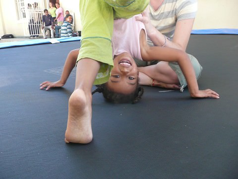 We have visited a feeding program in a near-by village a few times, and though I don’t have pictures of the actual feeding program (first a short sermon, some singing, prayer time…then handing out either packaged or cooked food), Caitlin and I had a ton of fun playing with some little girls on a trampoline one day, so here’s a taste of that.