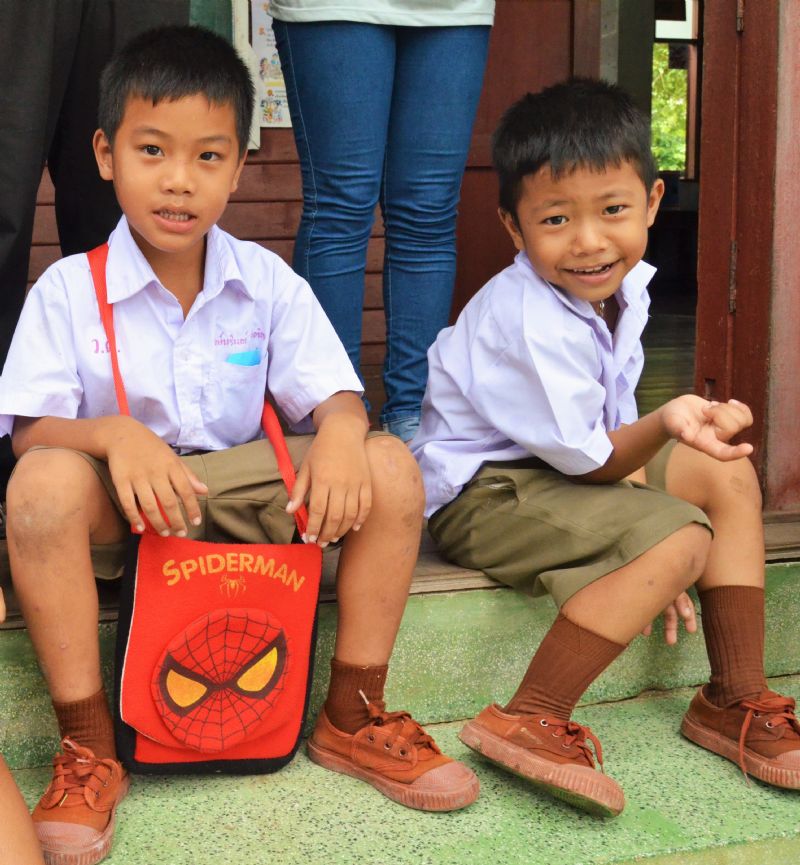 This month we have been going into schools throughout our province of Samut Songkhram. School structure is not the same here as it is in America. All the students here wear uniforms, in every school. The girls wear white collared shirts with adorable little bow ties, navy blue skirts, and black maryjane type shoes. The boys wear white button down shirts, khaki shorts and brown converse-looking shoes. The students take off their shoes when they enter the classroom, so their halls are littered with black and brown uniform shoes.