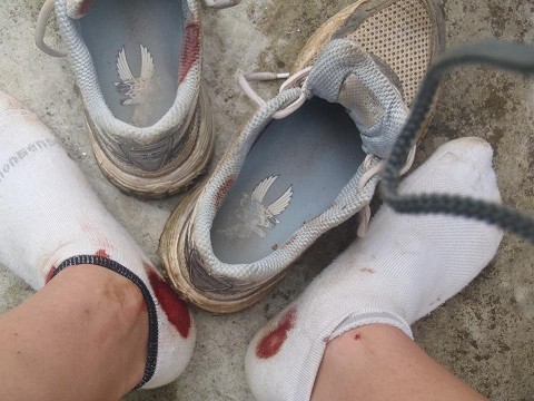 Leeches+not feeling them sucking your blood+pulling them off of your skin+ continuing to bleed=bloody socks and shoes. Sad day.