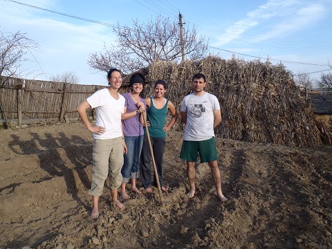 Sewing seeds. I never thought I had much of a green thumb, but I do now. I am now a Moldavian farmer. Potatoes, carrots, onions and flowers are growing as we speak. Oasis put in a team effort to conquer this task in one day. Our contact Fanel had his mind set on finishing this task, and by golly it happened. The task at hand and eating dinner took precedence over worrying about the bus back to city of Cahul. Question: "Shouldn't we be going so we can catch the bus?" Answer: "Nah, we can just hitch hike." ๐Ÿ™‚ Standing on the corner was quite entertaining. After about 30 minutes of sticking our thumbs out, an unexpected bus arrived to take us away to our home sweet home. Sort of a letdown.