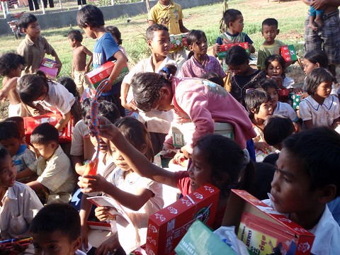 Kids in one of the villages we visited awaiting their Operation Christmas Child boxes